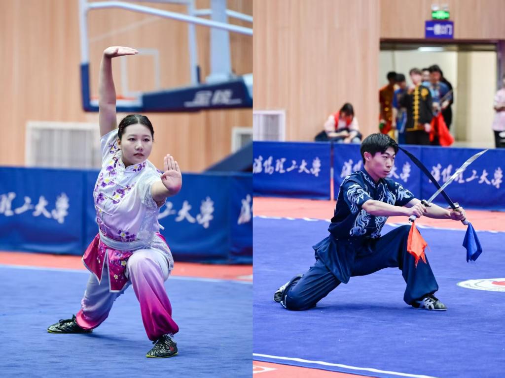 在赛场上,两名运动员动作行云流水,力量与美感并存,展示了中华武术的独特魅力。初登赛场,刘佳取得了女子本科院校组四类拳-华拳亚军、软器械-九节鞭亚军;于心翔取得了男子本科院校组二类拳-翻子拳季军、双刀第四名的喜人成绩。